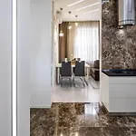 Die Zimmer dieses Apartments bieten eine komplette Küche mit einem Wasserkocher, einem Kühlschrank und einem Herd. Die Gäste des Apartments können den Komfort von Ausstattung zur Kaffee- & Teezubereitung genießen. Das Restaurant Batjar liegt etwa 5 Gehminuten von dieser Unterkunft entfernt und serviert polnische Gerichte. Eine 15-minütige Fahrt führt zum Flughafen Lwiw.